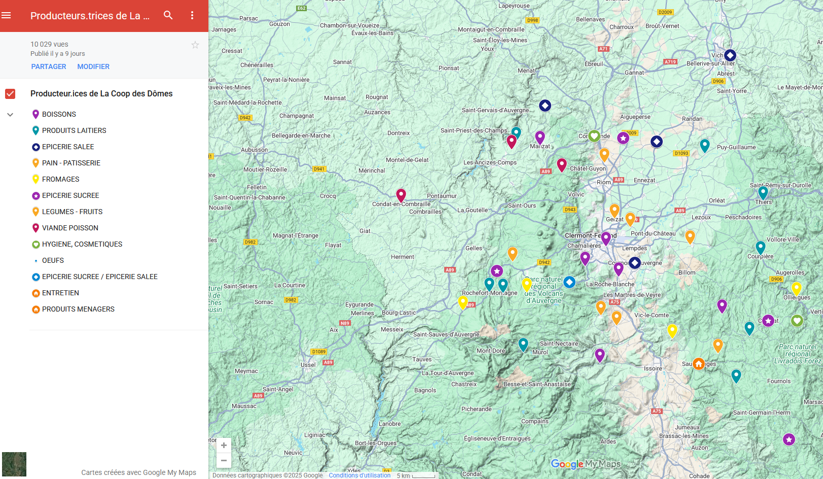 En juillet 2025 la Coop comptait environ 70 producteurs « locaux ». Cliquez sur la carte où vous voulez.